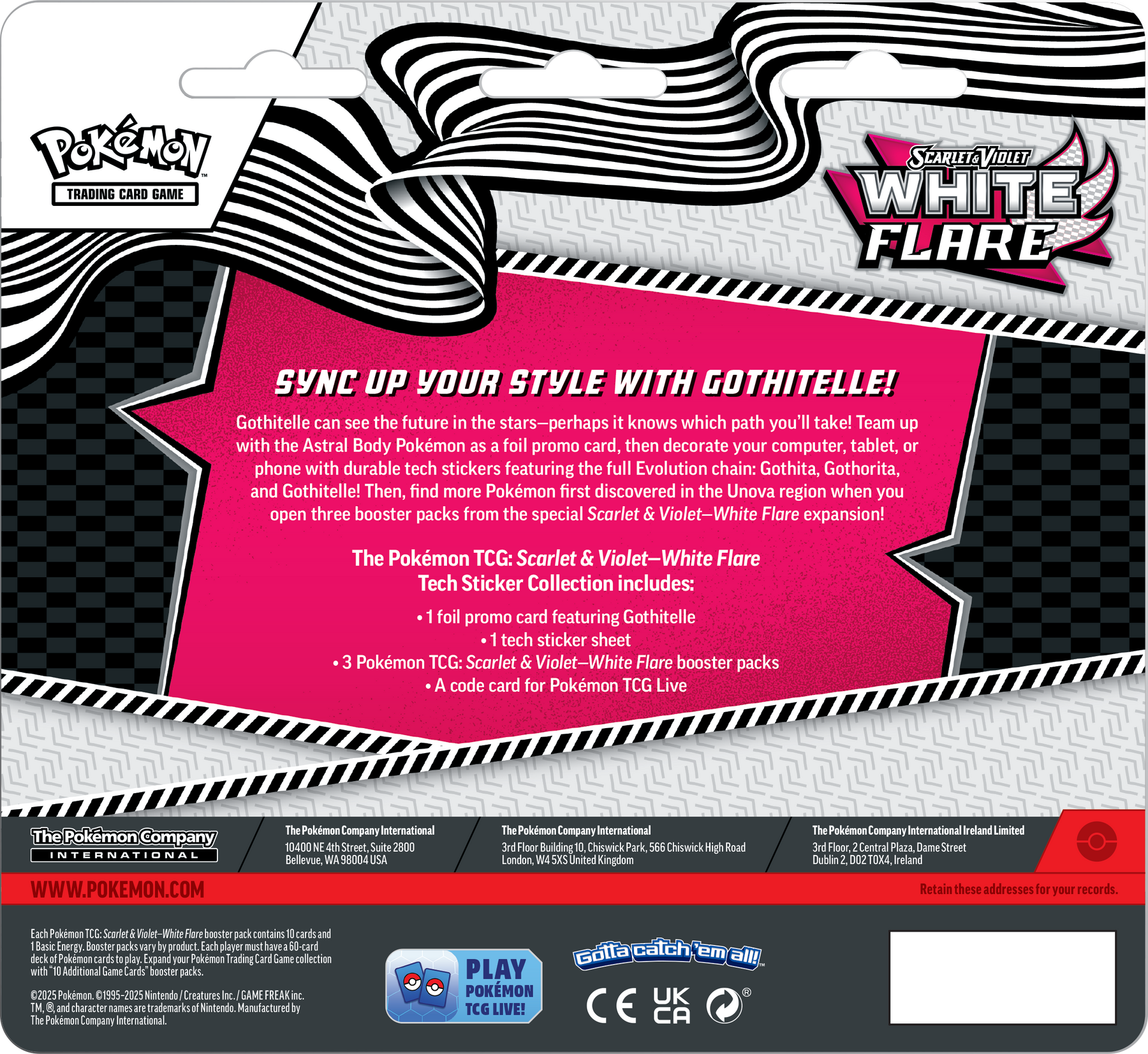 Add a touch of mystery to your collection with the White Flare Tech Sticker Collection Gothitelle. This unique product from the White Flare expansion brings together a stylish holo promo, a sleek tech-style Gothitelle sticker, and a trio of booster packs, all wrapped in a compact collector-friendly format.